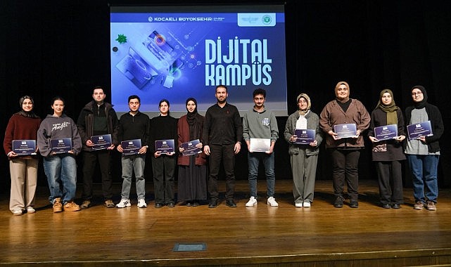 Gençlik ve Spor Hizmetleri Dairesi Başkanlığı Bilim, Teknoloji ve İnovasyon Şube Müdürü Mine Pir Kazan ise, “Dijital Kampüs’te üreten gençler, bugün emeklerini sertifikayla taçlandırıyor. Dijital gelişiminize önem verdiğiniz için buradasınız ve eğitim programımızdan mezun olmayı hak ettiniz. Tüm öğrencilerimizi tebrik ediyorum. Kocaeli’de üniversite öğrencisi olmak ayrı bir şanstır. Kocaeli Büyükşehir Belediye Başkanımız bildiğiniz üzere akademisyen olduğu için gençlerin eğitimi ve dijital gelişimlerinin desteklenmesine çok önem veren bir vizyona sahip. Biz de bu vizyonu sizlere ulaştırmak için çalışan ekip arkadaşlarıyız. Kocaeli’de öğrenci olmanın bir diğer avantajı da Kocaeli Büyükşehir Belediyesi ve Kocaeli Üniversitesi arasındaki uyumdur. Her iki kurumun bu kadar uyumlu çalışması her şehir de mümkün olmayabilir. Bu imkânın içerisinde olduğunuz için kendinizi şanslı hissedebilirsiniz. Yolunuz bahtınız açık olsun” ifadelerini kullandı. Konuşmaların ardından 235 öğrenciye sertifikaları törenle takdim edildi.
