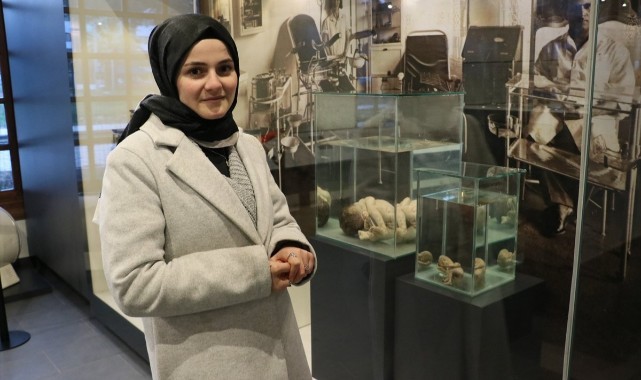 Cerrahi Aletler ve Sağlık Müzesi Sorumlusu Arkeolog Zehra Ceviz, müzede 400'e yakın parçanın sergilendiğini, bebek ve fetüsler ile 14 bebek kalbinin cam fanus içinde müzenin doğum bölümünde olduğunu belirterek şu ifadeleri kullandı: