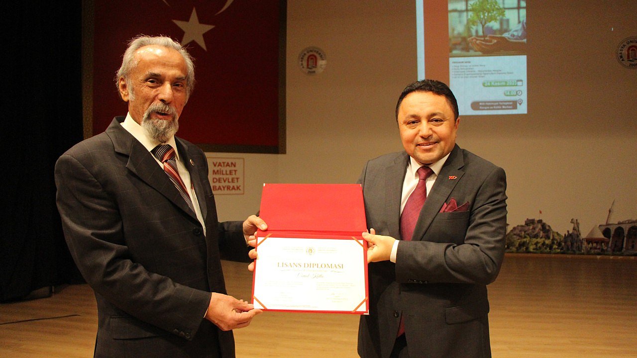 Kutlu’ya diplomasını veren Rektör Yardımcısı Prof. Dr. Murat Kurt da “Cemal Bey benim dersime girmişti. Çok düzenli, tertipli, hiç devamsızlık yapmayan bir öğrencimizdi” şeklinde konuştu.