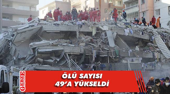 AFAD, İzmir depreminde can kaybının 49'a yükseldiğini bildirdi. 8 binada arama kurtarma çalışmaları devam ediyor. Depremin ardından 40'ının büyüklüğü 4'ün üzerinde, 833 artçı sarsıntı kaydedildi.
