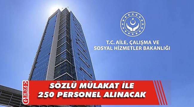 Basın İlan Kurumu ilan portalı ilan.gov.tr'de yer alan duyuruya göre Aile, Çalışma ve Sosyal Hizmetler Bakanlığı, 250 personel alacak.