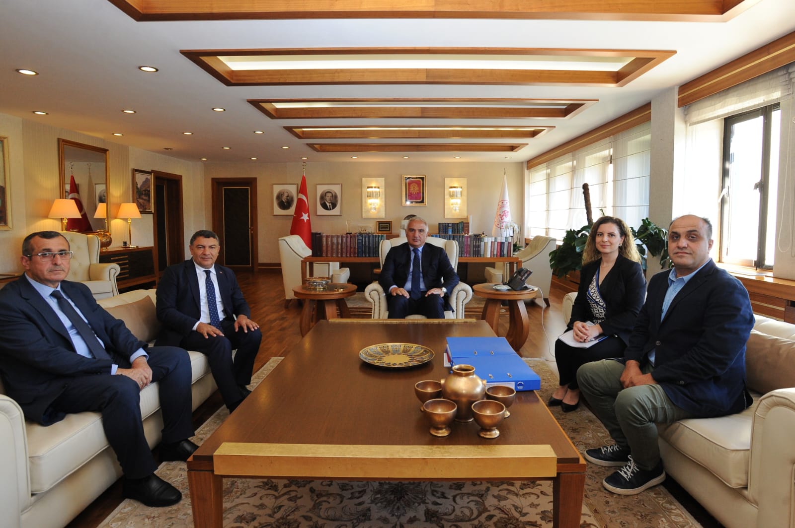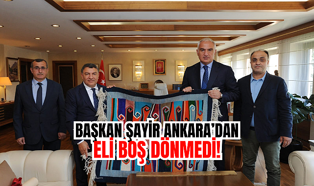 Kültür ve Turizm Bakanı Mehmet Nuri Ersoy’u da makamında ziyaret eden Başkan Şayir ve yanındaki heyet; ilçede devam eden ve yeni kazandırılacak projeleri görüştü. Görüşmede Başkan Şayir, Tavşancıl’da devam eden tarihi evlerin yeniden hayata kazandırılması ile ilgili Bakan Ersoy’a bilgi brifing verirken, projesi hazır olan sokak güzelleştirme projesine de destek istedi. Bakan Ersoy ise projeyi inceleyerek Tarihi Tavşancıl Evleri’nin hayata kazandırılması ve sokak güzelleştirilmelerinin yapılması için 45 milyon TL hibe desteği sözü verdi. Oldukça verimli geçen görüşmenin sonunda ise Başkan Şayir, misafirperverliği ve desteğinden dolayı Dilovalı annelerin el emeği göz nuru ile ürettikleri kilimi Bakan Ersoy’a hediye etti.