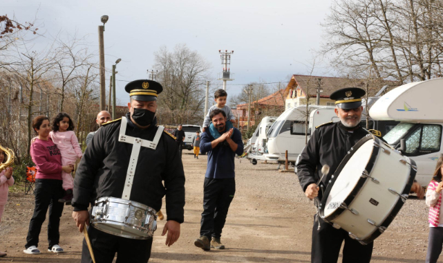 Kocaeli Büyükşehir Belediyesi Bando Takımı, Ormanya Kamp Alanı'nda konaklayan yerli ve yabancı turistler için sürpriz bir konser düzenledi.