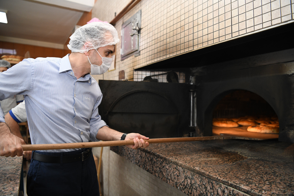 Başkan Çiftçi, denetimler sırasında fırın küreğini eline aldı ve Ramazan pidelerini fırına verdi