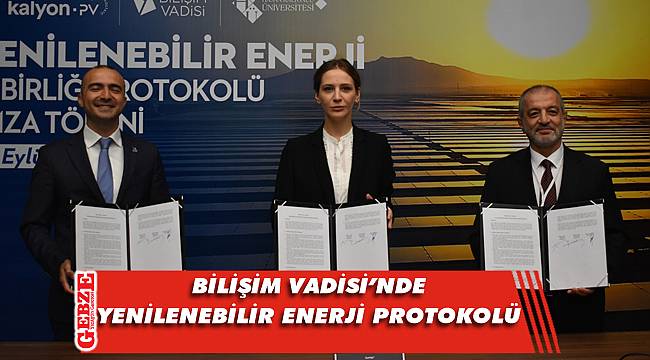 Protokol ile Bilişim Vadisi’nin enerjisinin büyük bir bölümünü yenilenebilir enerji ile üreteceklerini söyleyen Bilişim Vadisi Genel Müdürü Ahmet Serdar İbrahimcioğlu ise, “Biz, Bilişim Vadisi’nin savunma sanayisindeki başarısını sivil alanlara da taşımak istiyoruz. Bunlardan biriside enerji konusudur. Yenilenebilir enerji konusunda bizimde çalışmalarımız var. Bugün burada yapılacak çalıştaydan çıkacak sonuçları, inşallah güçlü bir iş birliği kısa sürede hayata geçirmeyi hedefliyoruz. Ayrıca burada tekrara Kalyon PV şirketine teşekkür ediyorum. Kendileri, bize Bilişim Vadisinin neredeyse harcadığı tüm enerjiyi yenilenebilir enerji kaynaklarından sağlaması amacıyla 2 bin 619 güneş paneli armağan etti. Bu hediye sadece Bilişim Vadisi’ne değil burada çalışan bütün girişimcilere ve ülkemizedir. Bilişim vadisine bir armağan olarak verilen 2619 adet panel yaklaşık 1 megawatt. Bilişim Vadisi’nin bugün tüm girişimcilerin kullandığı enerji ihtiyacının yarısını karşılamaktadır” şeklinde konuştu.