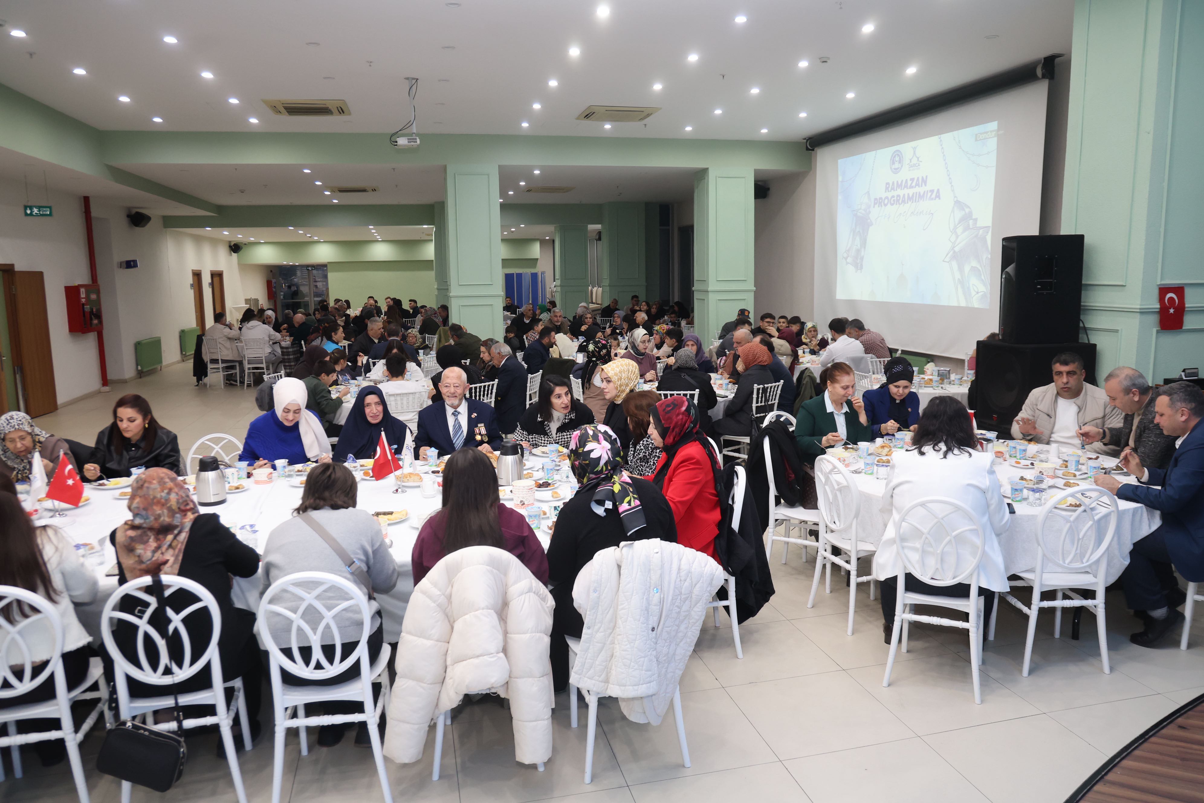 Aile ve Sosyal Hizmetler Bakanlığı koordinasyonunda Ramazan ayının ilk gününde Türkiye genelinde kurulan “Büyük Aile Sofraları” kapsamında, şehit yakınları, gaziler ve gazi yakınları aynı sofrada bir araya geldi. “Şehit Yakınlarımız ve Gazilerimizle Büyük Aile Sofrası” temasıyla 81 ilde eş zamanlı düzenlenen iftar programı, Darıca Belediyesi ve Darıca Kaymakamlığı ev sahipliğinde gerçekleştirildi. Darıca Belediyesi Adnan Menderes Kültür Merkezi’nde düzenlenen iftar yemeğine Darıca Kaymakamı Yaşar Dönmez, Büyükşehir Belediyesi Başkanvekili Hasan Soba, Darıca Belediye Başkanı Muzaffer Bıyık ve eşi Havva Bıyık ile siyasi parti temsilcileri, muhtarlar, şehit aileleri ve gazilerle birlikte çok sayıda davetli katıldı. Darıca protokolü, şehit aileleri ve gazilerin yoğun katılım sağladığı programda birlik, beraberlik ve vefa duyguları ön plana çıktı. Ramazan ayının manevi atmosferinde aynı sofrayı paylaşan katılımcılar, dualar eşliğinde oruçlarını açtı.