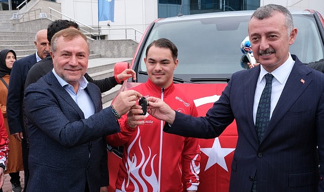 Kocaeli Büyükşehir Belediye Başkanı Tahir Büyükakın, Türkiye’yi yurt dışında başarıyla temsil edip iki kez Avrupa şampiyonu olan Down Sendromlu Özel Futsal Milli Takımına hizmet aracı hediye etti. Teslim töreninde konuşan Kocaeli Büyükşehir Belediye Başkanı Tahir Büyükakın, “Şimdi sırada dünya şampiyonluğu var. Mart´ta da o kupa Türkiye´ye gelecek" dedi.