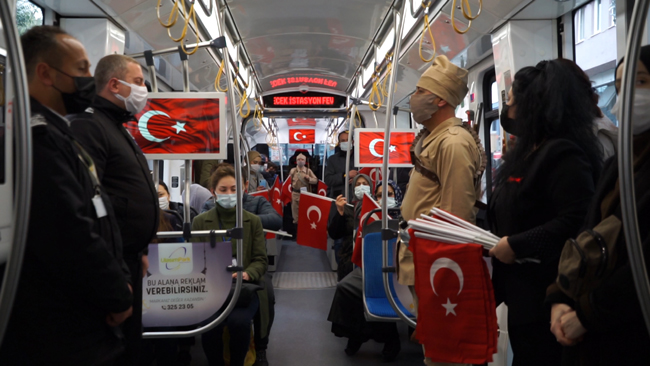 Yeni Cuma durağından hareket eden tramvay, Fevziye istasyonuna yaklaştığı sırada, Çanakkale Savaşı’nda kullanılan asker kıyafetleriyle Şehir Tiyatrosu’na bağlı tiyatrocuları tarafından durduruldu. Tramvaya binen askerler Necmettin Halil Onan’ın kaleme aldığı "Bir Yolcuya" şiirini okudu.