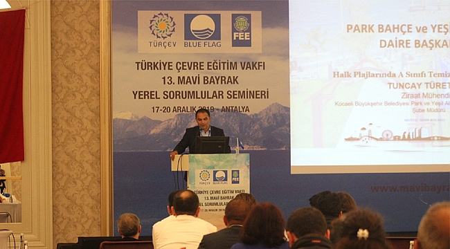 Uluslararası alanda Mavi Bayrak ödüllü plajlarımızın sayılarının arttırılarak aynı zamanda standartlarının diğer ülkelerden daha yüksek olması hedefiyle, Mavi Bayrak Programı’nı yürüten TÜRÇEV tarafından 13. Yerel Mavi Bayrak Sorumluları Eğitimi Semineri’ne Kocaeli Büyükşehir Belediyesi personelleri de katıldı. Eğitimde Çevre Koruma ve Kontrol Dairesi tarafından İzmit Körfezi’ne yapılan çevre yatırımları ile birlikte örnek kontrol ve denetim faaliyetleri anlatılırken Park Bahçeler ve Yeşil Alanlar Dairesi Başkanlığı tarafından “Halk Plajlarında A Sınıfı Temizlik Nasıl Sağlandı” konulu sunumlar gerçekleştirildi.