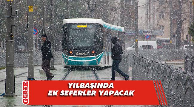Kocaeli Büyükşehir Belediyesi, yılbaşında yaşanacak yoğunluk nedeniyle ek sefer kararı aldı. Bu kapsamda 31 Aralık 2021 Cuma gününü 1 Ocak 2022 Cumartesi gününe bağlayan yılbaşı gecesi için tramvay ve otobüsleri kapsayan ek seferler ilave edildi. Tramvay ve otobüs hatları gece 01.30’a kadar hizmet vermeye devam edecek.