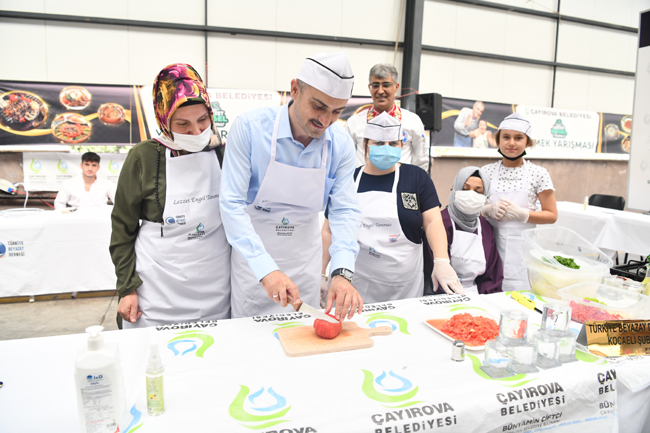 Çayırova Belediyesi “Sevince’’ sloganı ile gerçekleştirdiği projelerine bir yenisini daha eklerken Çayırova Belediye Başkanı Bünyamin Çiftçi, Lezzet Engel Tanımaz Yarışması’nın yapıldığı alana gelerek yarışmacıların heyecanına ortak oldu. Yarışma alanını gezen ve tüm yarışmacılarla tek tek sohbet eden Başkan Çiftçi, jüri üyeleri ve yarışmacılara başarı dileklerinde bulundu. Yarışma ve engelli vatandaşlar hakkında açıklamalarda bulunan Başkan Çiftçi, gerçekleştirdiği konuşmasında,“Sevince bütün engeller ortadan kalkıyor Rabbime hamd olsun. Göreve geldiğimiz ilk günden bugüne engelli kardeşlerimizin önündeki engelleri kaldırmak adına birçok çalışma yaptık yapmaya da devam ediyoruz. Biz her yıl engelli kardeşlerimizin hayatını kolaylaştırmak ve farkındalığını hatırlatmak adına bir konu başlığı belirliyoruz. Bu yılda konu başlığını “Engelli Ev Hayatı’’ olarak belirledik. Bu kapsamda bu konu başlığı altında bir çalışma yaparak bu yarışmayı düzenledik. Engelli kardeşlerimizin hayatını kolaylaştırmak ve çözüm üretmek adına çalışmalar yapmaya devam edeceğiz’’ dedi.