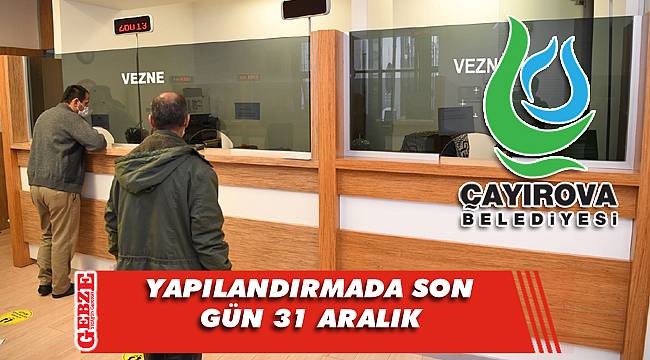 Çayırova Belediyesi, 7256 sayılı yapılandırma kanunu kapsamında belediyeye vadesi 31 Ağustos 2020 tarihinden önce borcu olan vatandaşların, borç yapılandırması için yapması gereken başvuru için son günün 31 Aralık Perşembe günü olduğunu açıkladı.