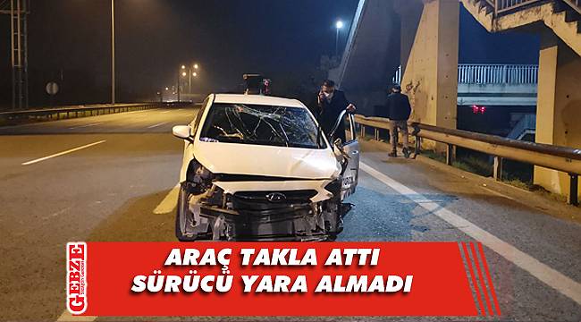 Alınan bilgiye göre, Şekerpınar Mahallesi Anadolu Otoyolu ile D-100 kara yolu bağlantı yolunda Y.E. yönetimindeki 34 PB 3940 plakalı otomobil, sürücüsünün direksiyon hakimiyetini kaybetmesi sonucu takla attı. Önünde seyir halindeki Ş.K'nin kullandığı 41 VC 176 plakalı otomobil taşıyan tıra çarparak duran otomobilin sürücüsü, kazadan yara almadan kurtuldu.
