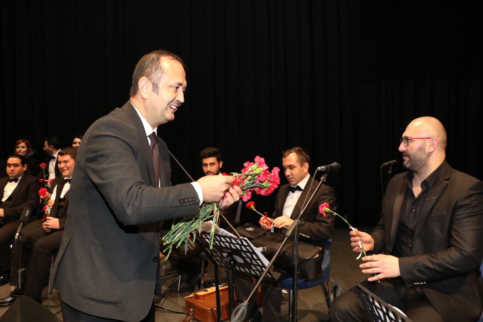 Kocaeli Büyükşehir Belediye Başkanvekili Yaşar Çakmak, 3 Aralık Dünya Engelliler Günü’ne özel muhteşem bir konser veren ‘Engelsiz Sanat Topluluğu’ korosunu ayakta alkışladı. Çakmak; Mürsel Aygör, Serhat Atasoy, Yunus Gökoğlan, Enis Çelik, Buket Şen, Gizem Azar, Rahim Kayar, Berkay Yalçın Ünver, Gülsüm Bektaş, Havva Alyurt ve Selahattin Coşkun’dan oluşan 11 kişilik korist grubuna tek tek karanfil takdim ederken, onlara verdiği eğitim ile muhteşem bir konserin ortaya çıkmasını sağlayan Koro şefi Zeki Aytekin’e de çiçek vererek teşekkürlerini sundu. Konser sonunda Başkanvekili Çakmak ve ‘Engelsiz Sanat Topluluğu’ korosu günü anısına hatıra fotoğrafı çektirdi.