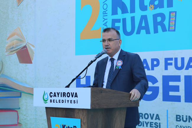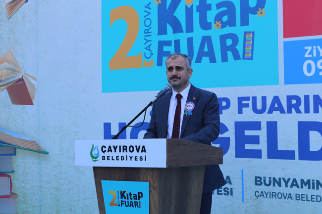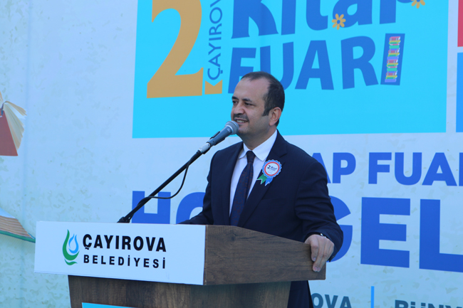 "İlçemizi imar ederken, geleceğimizi de inşa ediyoruz. Geleceği inşa etmek en büyük sorumluluğumuz dedik. Bir kentin geleceğini inşa etmek o şehrin kültürüne hizmet etmek demektir. Çocukların daha iyi eğitim alması için bilgievlerinde eğitimi 5 güne çıkardık. Bölgemizde ilk defa kadın tiyatrosunu kurduk. Hemşehrilerimizden bir koro oluşturduk. Liseli gençlerden de bir tiyatro ekibi kurduk. Eğitim kültür sanat ve sporda yaptığımız birçok proje var. 2019 yılında bölgemizde yeni bir başlangıç yaptık ve Çayırovada ilk kez kitap fuarı yaptık. Bu yıl daha dolu bir programla kitap fuarının açtık. Birbirinden değerli 40 yazar ve akademisyenimizi ağırlayacağız. Birbirinden değerli 70 yayın evini sizlerle buluşturacağız. Fuarımızda sıfır atık sisteminin önemini vurgulamak amacıyla geri dönüşümü mümkün torbalar vereceğiz. 2019 yılında attığımız bu küçük tohumun filizlenip yeşermesini Rabbimden niyaz ediyorum."