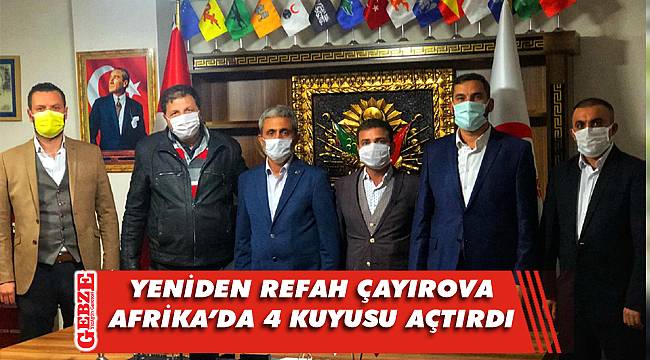 Çayırova’dan Afrika’ya yardım eli. Yeniden Refah Partisi Çayırova İlçe Sosyal İşler Başkanı Uğur Aslan’ın 1 ay önce ‘Su Hayattır’ sloganıyla başlattığı proje kapsamında Afrika’da 4 adet su kuyusu açıldı. Konuyla ilgili ilçe binasında selamet derneğini misafir eden Yeniden Refah Çayırova ilçe yönetimi, teşkilat mensupları ve yardımsever vatandaşların katkılarıyla toplanan 4 adet su kuyusu parasını Selamet Derrneği Çayırova Temsilcisi Murat Ayyıldız’a teslim etti. Yeniden Refah Partisi Çayırova Sosyal İşler Başkanı Uğur Aslan yaptığı konuşmada,”Temiz su kaynaklarına ulaşmanın zor olduğu Afrika’da, COVİD-19 salgınında etkisiyle şartlar daha da zorlaşmıştır. Bu zor şartlar altında yaşayan Afrikalı insanlar için bizlerde bir şeyler yapmak istedik ve su kuyusu açtırmaya karar verdik” dedi. Aslan, hayır çalışmalarına destek veren ve katkı sağlayan hayırsever vatandaşlara da teşekkür etti.