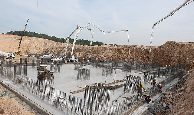 Hafta sonu gerçekleştirilen çalışmalar kapsamında, 2 bin 300 metrekarelik alana, 1,30 metre yüksekliğinde toplam 2 bin 900 metreküp beton döküldü. Böylece hastanenin temel betonunun yaklaşık yüzde 30’u tamamlanmış oldu. Şantiye alanında istinat duvarı, gro beton serimi ve temel demir bağlama işlemleri de eş zamanlı olarak sürüyor. Çalışmaların planlandığı şekilde ilerlediği bildirildi.