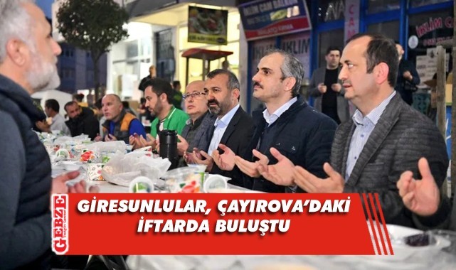 Çayırovalı Giresunlular iftar yemeğinde buluştu. Çayırova Giresunlular Derneği Başkanı Recep Akıllı'nın ev sahipliğinde gerçekleşen iftar yemeği, İstiklal Caddesi'nde bulunan dernek lokali önünde kurulan masalarda buluşan Giresunlular, iftarlarını hep birlikte açtılar. Giresunluların geleneksel iftarı olan ancak 2 yıldır pandemi nedeniyle düzenlenemeyen iftar yemeği, bu yıl tedbirlerin kalkmasıyla yeniden düzenlendi. İftar yemeğine Kocaeli Büyükşehir Belediye Başkanvekili Yaşar Çakmak, Çayırova Belediye Başkanı Bünyamin Çiftçi ve bölge siyasetçileri ve çok sayıda Giresunlu katılım gösterdi.