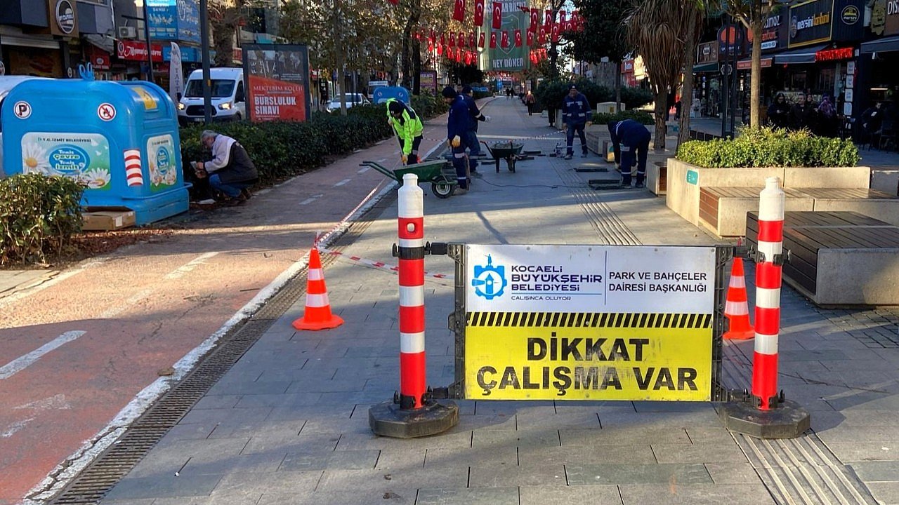 Büyükşehir Belediyesi Park ve Bahçeler Dairesi Başkanlığı’na bağlı ekipler, İzmit Cumhuriyet Bulvarı’nda zamanla yerinden oynayan, kırılan veya hasar gören granit taşları öncelikle tespit ediyor. Yapılan incelemelerin ardından oynayan taşların tamiri gerçekleştirilirken, onarımı mümkün olmayan eski ve hasarlı taşlar ise yeni taşlarla değiştiriliyor.