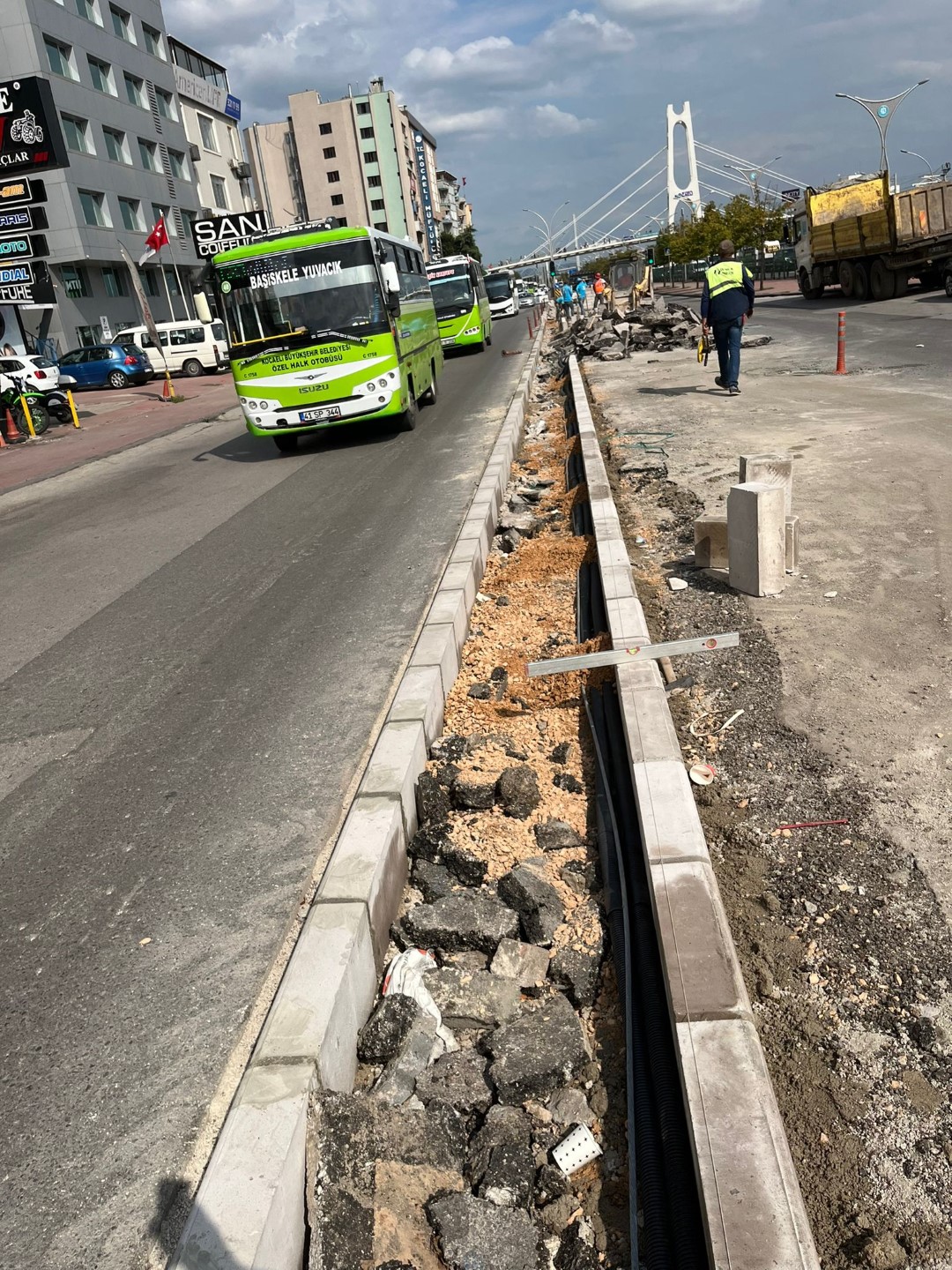 Kocaeli Büyükşehir Belediyesi tarafından İzmit D-100 Kuzey yan yolda refüj yapılıyor. Halkevi önünden başlayan orta refüj yapım çalışmalarıyla yan yolda andezit bordür imalatları ve aydınlatma direkleri montajı yapılacak. Trafik akışının düzenli ve güvenli hale getirileceği çalışmayla refüjle şeritler ayrılırken aydınlatma direkleriyle de yolda modern ve güvenli aydınlatma sağlanacak.