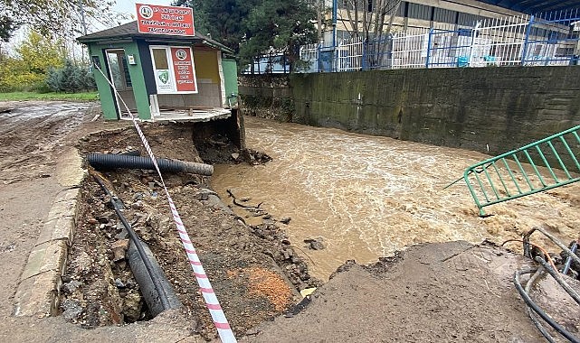 İzmit’te dere yatağı çöktü. Çökme sebebiyle dere yatağında bulunan kulübe de hasar gördü. Belediye ekipleri bölgede güvenlik önlemi aldı.