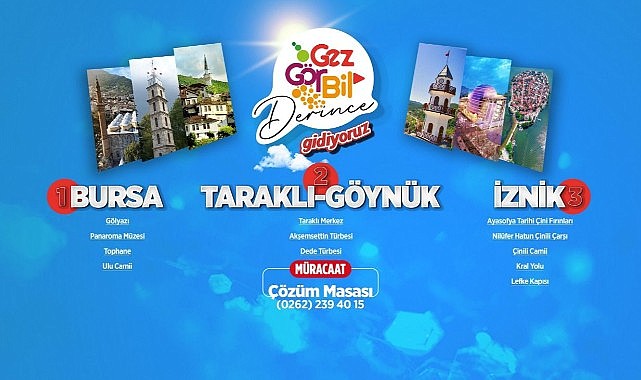 Derince Belediyesi’nin Gez-Gör-Bil projesi kapsamında Taraklı-Göynük, Bursa ve İznik’e düzenleyeceği kültür gezileri için kayıt süreci başladı.