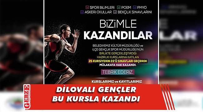 Dilovası Belediyesi, eğitime verdiği desteği sürdürmeye devam ediyor. Dilovası Belediyesi Kültür ve Sosyal İşler Müdürlüğü ile Dilovası İlçe Gençlik ve Spor Müdürlüğü tarafından organize edilen Dilovalı gençlere yönelik ücretsiz olarak başlatılan Spor Bilimleri kursu, Polis Meslek Yüksek Okulu (PMYO) ve Polis Meslek Eğitim Merkezleri (POMEM) sınavları hazırlık kursları, Askerlik Okulları kursları ve Bekçilik kurslarına katılan gençler büyük başarı gösterdiler. Geçtiğimiz aylarda başlatılan hazırlık kurslarına katılan 25 kursiyerden 23’ü sınavlarda başarılı olarak, mülakatlara katılma hakkı kazandılar.