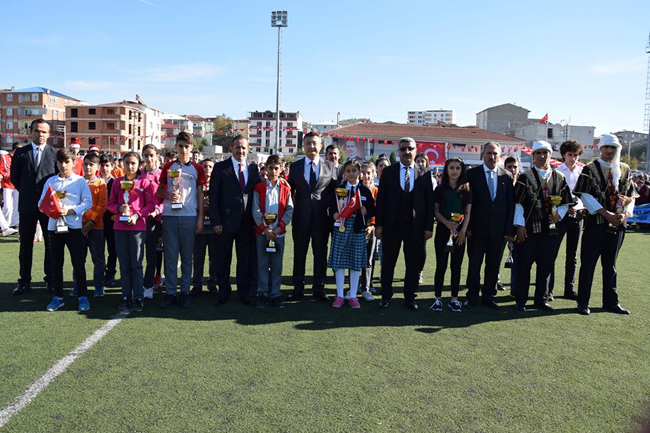 Kaymakam Mustafa Asım Alkanın konuşmasının ardından tören öğrenciler tarafından okunan şiirler, okul korosunun Cumhuriyet marşlarını seslendirmesiyle devam etti. Cumhuriyetin 95. Yılı kutlamaları, okullar arası düzenlenen kompozisyon, resim, şiir, yarışmalarında dereceye giren birinci, ikinci ve üçüncülere ödülleri takdim edildi. halk oyunları gösterisi beğeniyle izlenirken küçük oyuncular alkış topladı. Cumhuriyet Bayramı programı Okuların Tören geçişi ve toplu fotoğraf çekimi ile son buldu.