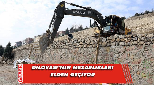 Kocaeli Büyükşehir Belediyesi ekipleri, Dilovası Orhangazi ve Demirciler Köyü mezarlıklarında yol ve taş duvar işleri gerçekleştiriyor.