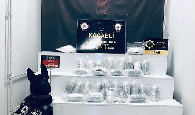 Kocaeli'de durdurulan araçta yapılan aramada 9 kilo 500 gram uyuşturucu madde ele geçirildi.