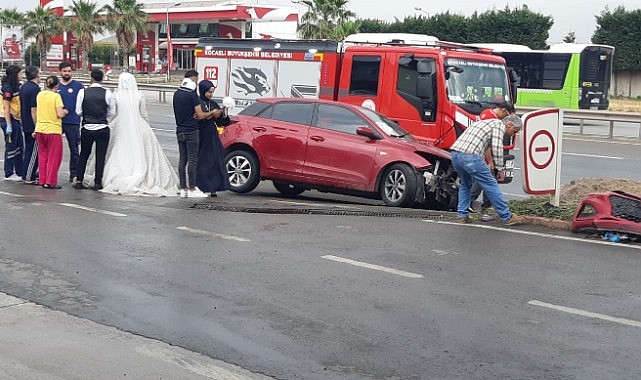 Kaza, Körfez Kirazlıyalı mevkii D-100 Karayolu bağlantı yolu İstanbul İstikametinde meydana geldi. Edinilen bilgiye göre, sürücüsünün direksiyon hakimiyetini kaybettiği 61 KC 232 plakalı otomobil refüje çarptı. Araçta bulunan sürücü Enes B., Azar S., Kenan H., Yunus B. ve damat Adem B. yaralandı. Gelin Sebanur A. ise kazadan yara almadan kurtuldu. İhbar üzerine olay yerine sağlık ve polis ekipleri sevk edildi. Kısa sürede olay yerine gelen sağlık ekipleri, yaralıları ambulansla hastaneye kaldırdı. Yaralılar Gelin ve damadın akşam saatlerinde Gebze'de düğünleri olduğu, fotoğraf çekimi için başka bir araçla yola çıktıkları öğrenildi.