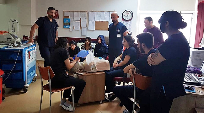 Hastanenin Dahiliye 2.Basamak Yoğun Bakım Ünitesi çalışanlarına Kardiyo, Pulmunar, Resüstasyon (CPR) Eğitimi verildi. CPR ( Kardiyopulmoner Resusitasyon ) nedir, hangi durumlarda yapılmaktadır, CPR’daki hızın önemi, CPR’a ne zaman başlanacağı, neler yapılacağı, temel yaşam desteği ve ileri yaşam desteği konuları anlatıldı. Hastane personeline verilen bu bilgiler ışığında yeni bilgilerin öğrenilmesi ve eski bilgilerin pekiştirilmesi hedeflenmektedir. Eğitimi alan personeller verilen eğitimden duydukları memnuniyeti dile getirerek, bu eğitimin meslek hayatlarında her zaman işlerine yarayacakları bilgiler olduklarını belirttiler.