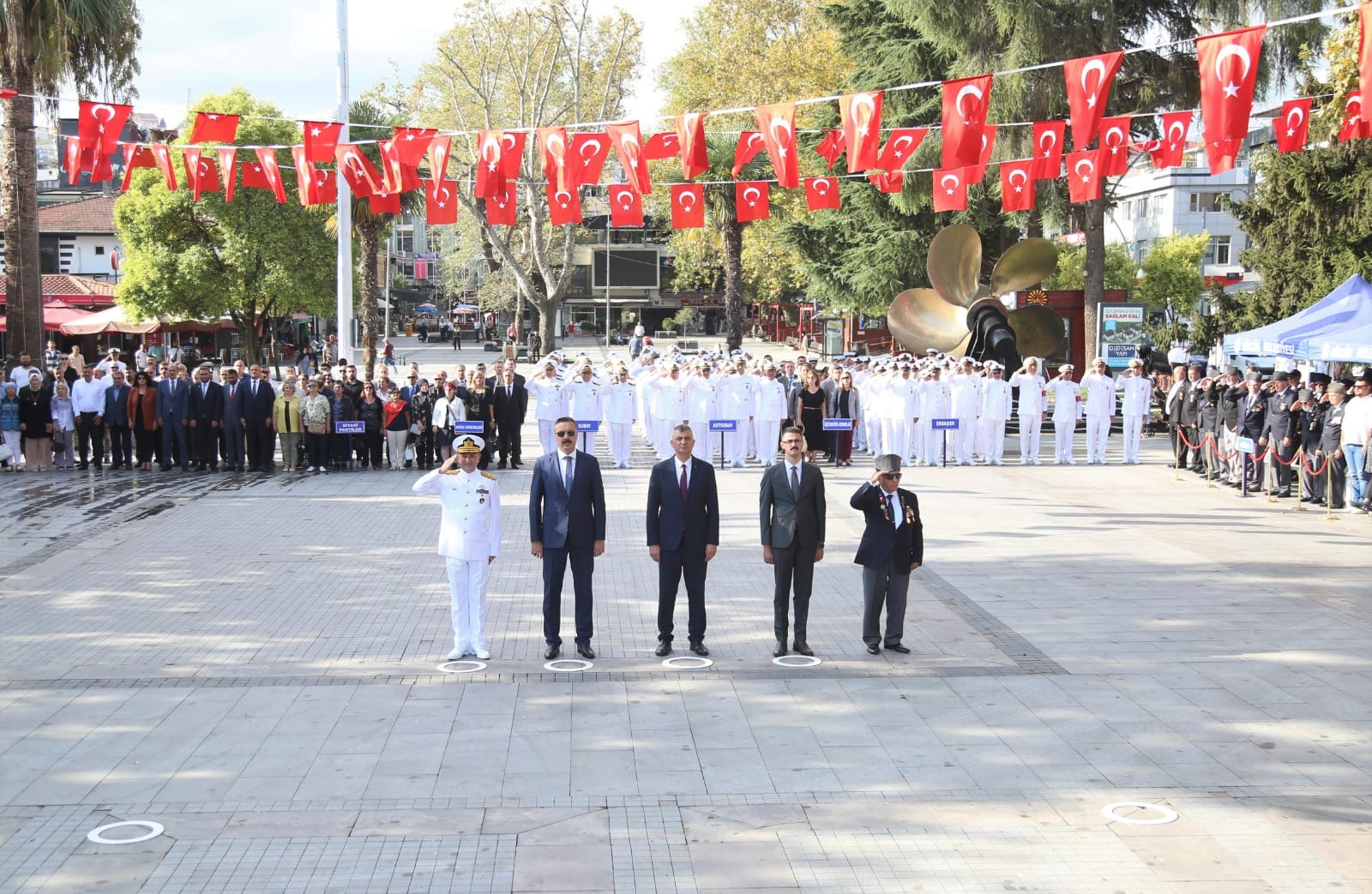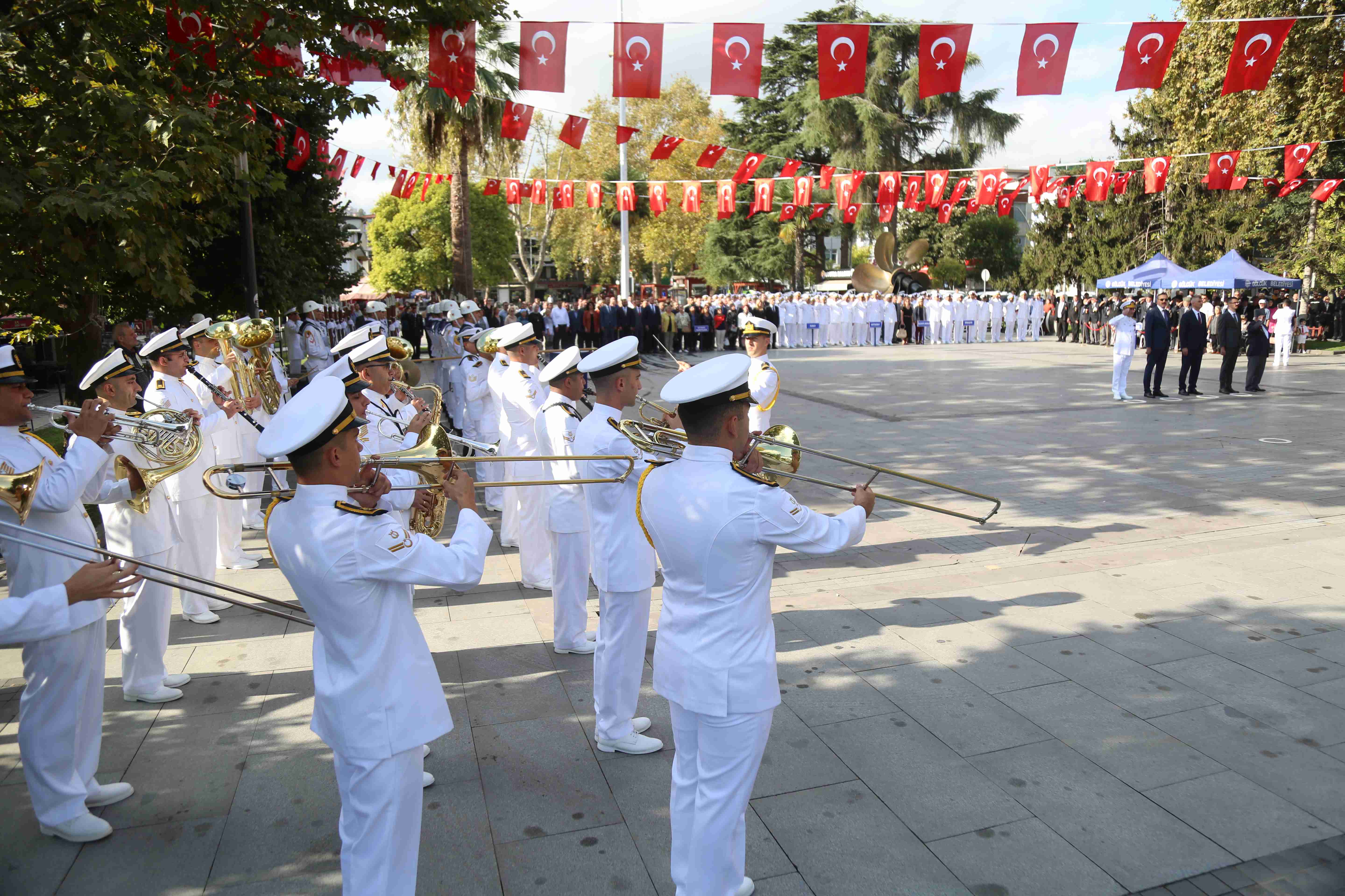 Gölcük Kaymakamı Müfit Gültekin, Gölcük Deniz Ana Üs ve Garnizon Komutanı Tuğamiral Ali Tuna Baysal, Gölcük Belediye Başkanı Ali Yıldırım Sezer ve Gaziler Derneği Gölcük Şubesi Başkanı Mehmet Arslan’ın Atatürk Anıtı’na çelenk sunmasıyla başlayan tören, askeri bando eşliğinde bir dakikalık saygı duruşu ve akabinde de; İstiklal Marşı’nın okunması ile devam etti. Tören; günün anlam ve önemini belirten konuşmaların yapılması ile son buldu. Törenin ardından Gölcük Kaymakamı Müfit Gültekin, Gölcük Deniz Ana Üs ve Garnizon Komutanı Tuğamiral Ali Tuna Baysal, Gölcük Belediye Başkanı Ali Yıldırım Sezer; Türkiye emekli Astsubaylar Derneği Gölcük Şubesi ile Gaziler Derneği Gölcük Şubesi’ni ziyaret ederek tüm gazilerin Gaziler Günü’nü kutladılar.