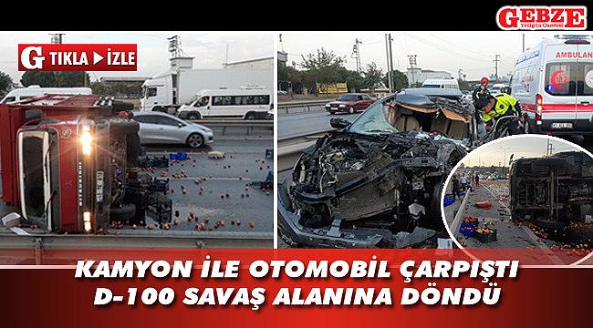 Gebze’de bu sabah 06.45 sıralarında korkunç bir kaza meydana geldi. Meyve-sebze yüklü kamyon ile otomobilin çarpışması sonucu biri ağır 2 kişi yaralandı.
