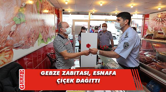 Gebze zabıtası bu sefer denetim için değil çiçek takdimi için esnafların kapısını çaldı.
