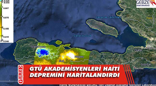 14 Ağustos 2021 tarihinde Haiti’de gerçekleşen ve yaklaşık 2000 insanın ölümüne sebep olan 7.2 şiddetindeki deprem felaketinin sebep olduğu yüzey deformasyonuna ilişkin haritalar GTÜ HaritaMühendisliği Öğretim Üyeleri Prof. Dr. Taşkın Kavzoğlu, Prof. Dr. Umut Güneş Sefercik ve Doç. Dr.İsmail Çölkesen tarafından İleri Uzaktan Algılama Teknoloji Laboratuarı bünyesinde üretildi.