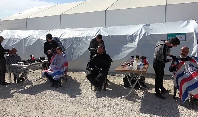 Hatay'ın Defne ilçesindeki Orhanlı çadır kentine gelen gönüllü berberler, depremzedelere hizmet vermeye başladı.
