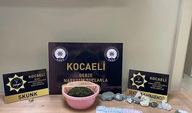 Edinilen bilgiye göre, İl Emniyet Müdürlüğü Narkotik Suçlarla Mücadele Şube Müdürlüğü ekipleri uyuşturucu madde kullanımı ve ticaretinin engellenmesine yönelik çalışma gerçekleştirdi. Derince ve Gebze ilçelerinde düzenlenen operasyonda 9 şahıs gözaltına alındı. Adreslerde ve şahısların üzerinde yapılan aramda; 961 gram sentetik kannabinoid, 5 gram skunk, 1 hassas terazi ve uyuşturucu madde ticaretinden elde edildiği tahmin edilen bin 800 TL ele geçirildi. Emniyetteki işlemlerinin ardından 2 şahıs serbest bırakıldı. Adliyeye sevk edilen M.B, S.A.M. ve B.K.K. adli kontrol şartıyla serbest bırakılırken, H.İ.K., O.K., K.K.Y. ve A.M. ise çıkarıldıkları mahkemece tutuklandı.