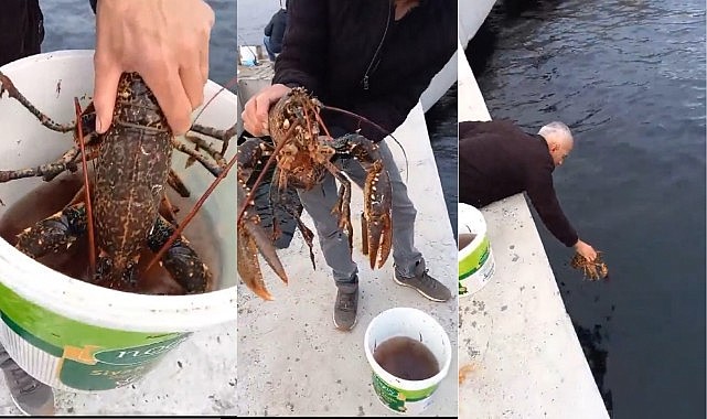 İzmit Körfezi'nde oltaya takılan 3 kilogram ağırlığındaki ıstakoz yeniden denize bırakıldı. O anları kayda alan amatör balıkçı, "Değeri çok yüksek olan, nadir bulunan ıstakoz. Böyle nadir bulunan canlıyı korumak için elimizden geleni yapıyoruz" dedi.