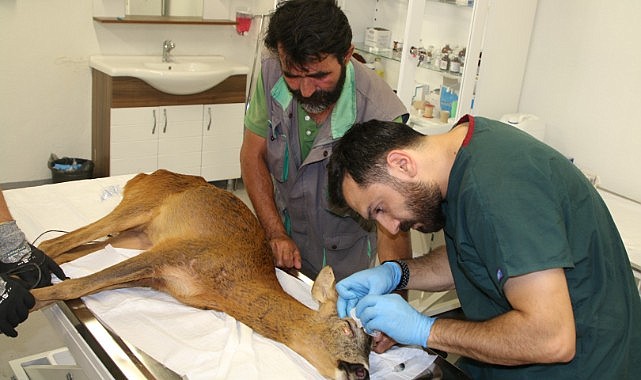 Ormanya Doğal Yaşam Parkı Yaban Hayatı Kurtarma ve Rehabilitasyon Merkezi’nde veteriner hekim tarafından ilk müdahalesi yapılan karaca gözlem altına alındı. Sağlık durumu iyiye giden Karaca, tedavisinin ardından doğal yaşam ortamına bırakılacak.