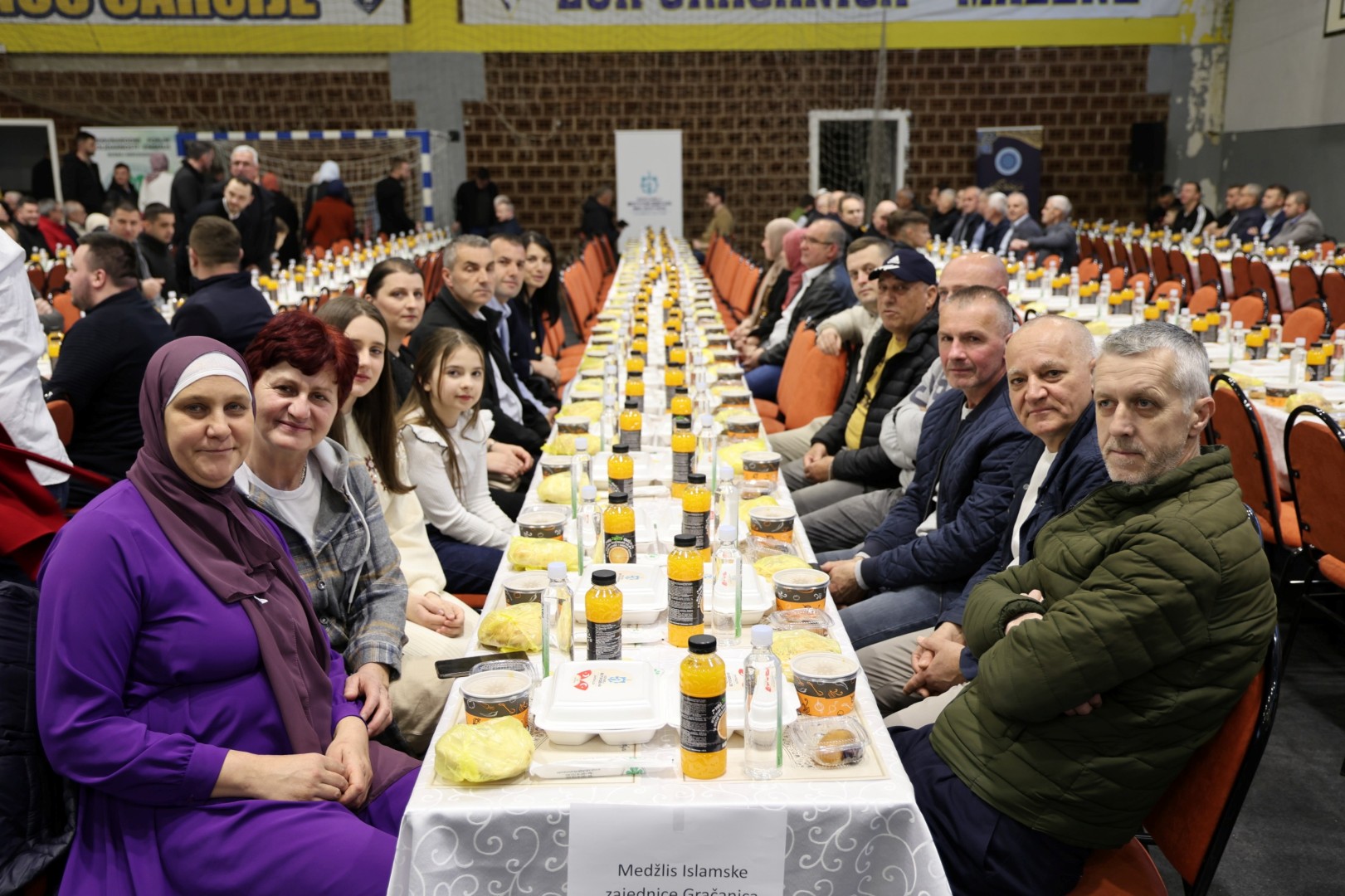 Başkan Büyükakın, şehir turunun ardından Graçanica Belediye Başkanı Sadmir Džebo, Türkiye Maarif Vakfı Ajans Başkanı Hamza Özdemir ve beraberindekiler ile birlikte Kardeşlik Sofrası’nın kurulduğu alana geçti. Yüzlerce kişinin katıldığı iftarda soydaşlarımızla sohbet eden Başkan Büyükakın sevgi gösterileri ile karşılandı.