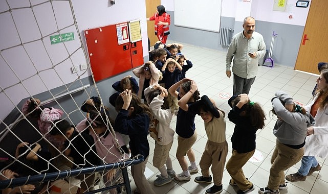 Kartepe'deki iki ilkokulda öğrencilere yönelik afet bilinci eğitimi ve tatbikatı düzenlendi.