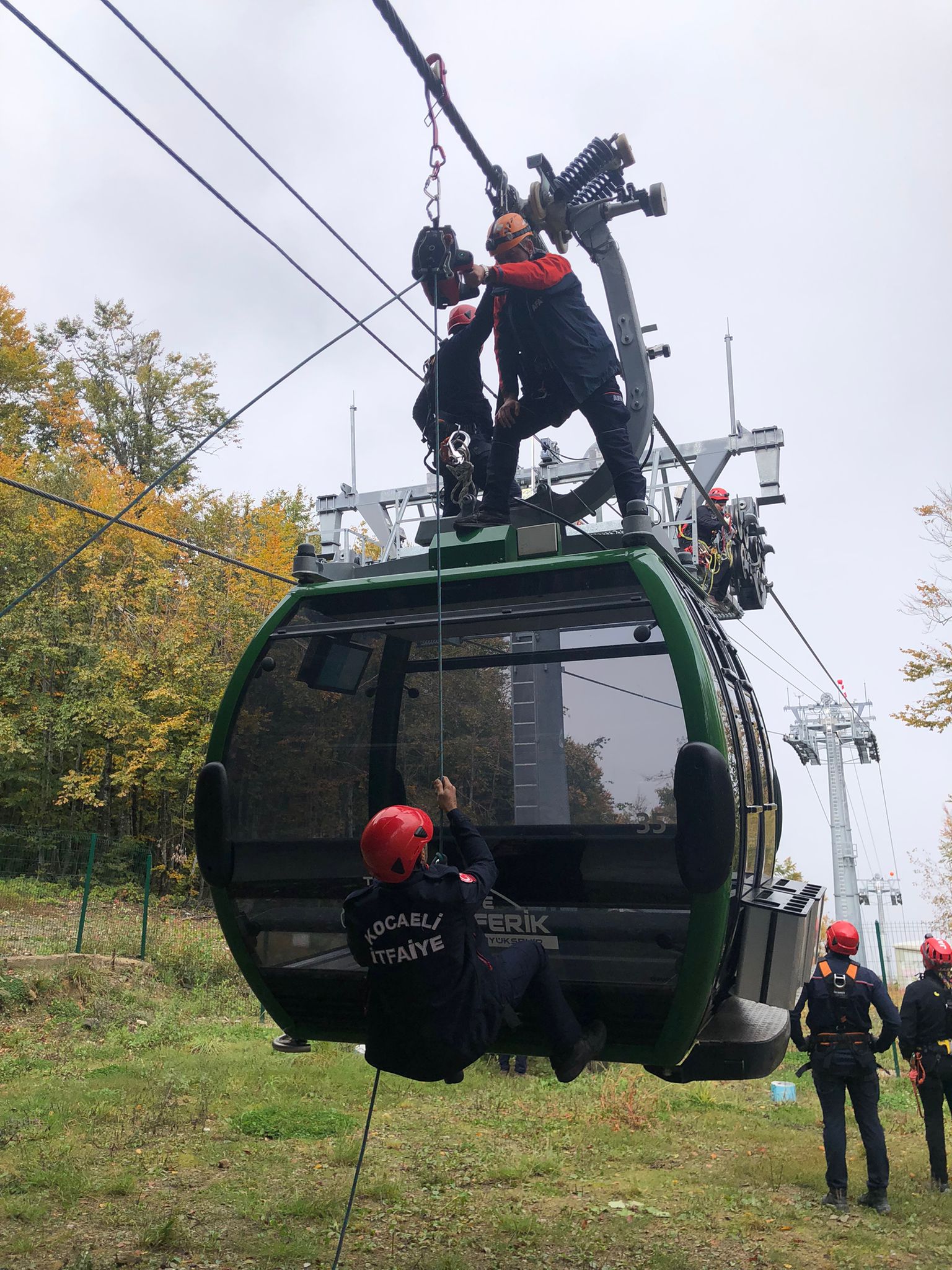 Kuzuyayla İstasyonu’nda gerçekleştirilen tatbikat başarıyla tamamlandı. Senaryo gereği teleferik kabinleri iki direk arasında yolcularla birlikte durdu. Kurtarma ekipleri, taşıyıcı tellerden kabine ulaşarak gerekli güvenlik önlemlerini aldı ve kabin içindeki yolcuları başarıyla tahliye etti. Tatbikat, ekiplerin koordinasyon ve müdahale kabiliyetini test etti.