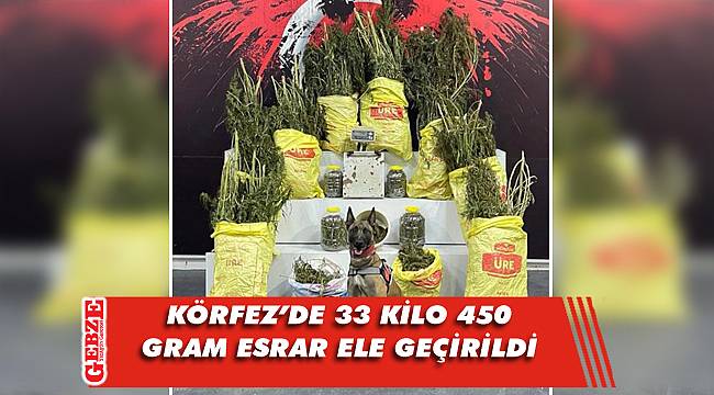 Körfez'de bir ev ile samanlıkta yapılan aramada 33 kilo 450 gram esrar bulundu.