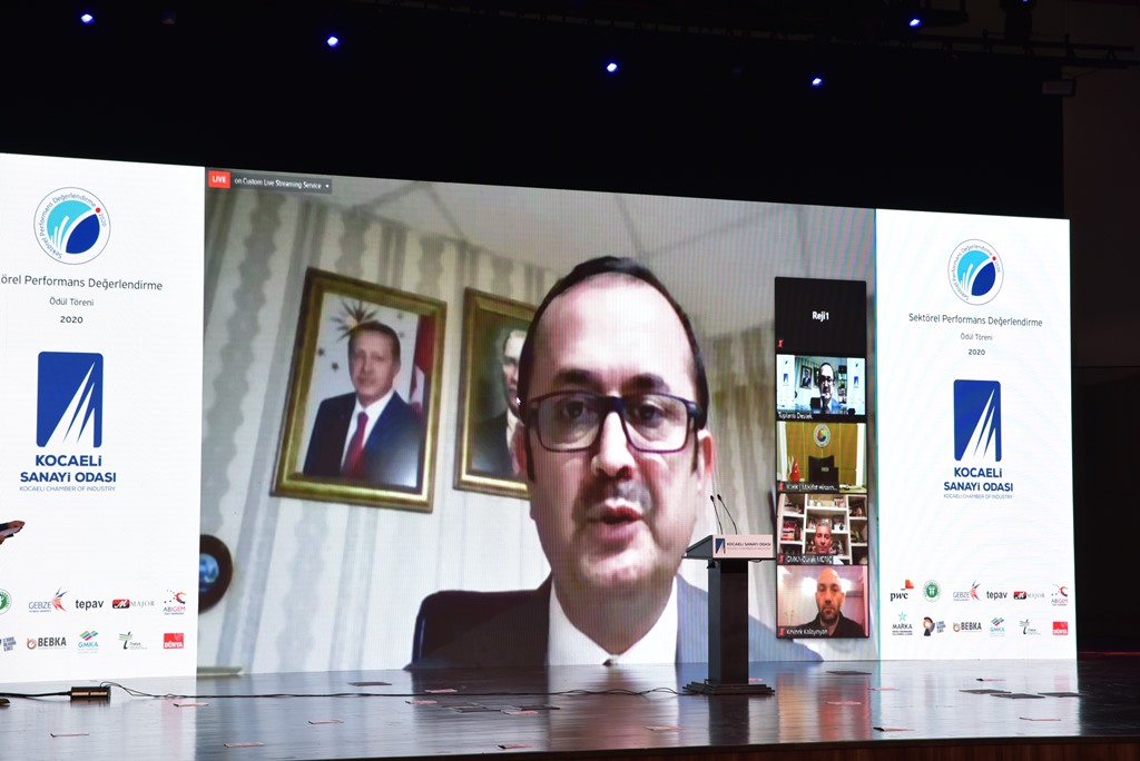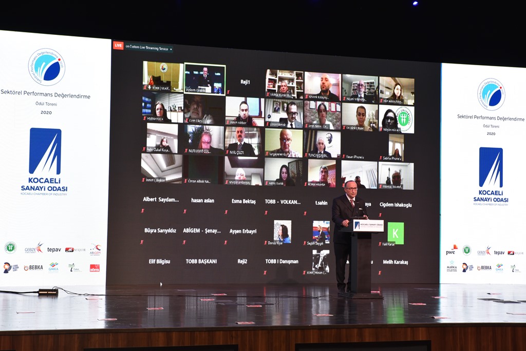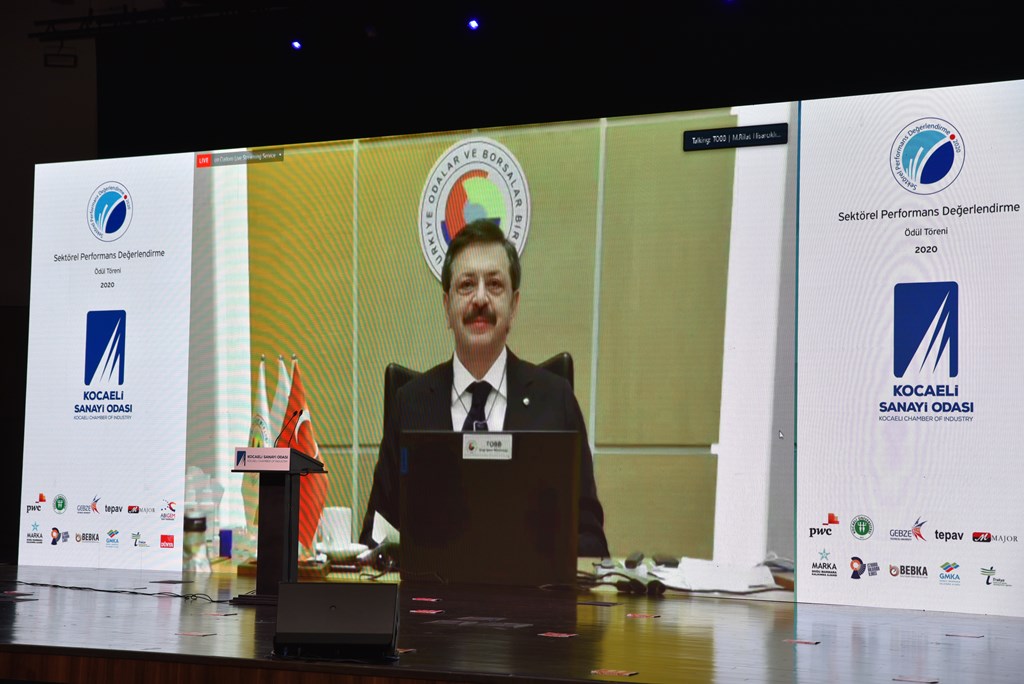 Kocaeli Sanayi Odası 13. Sektörel Performans Değerlendirme Ödül Töreni, dün akşam çevrim içi düzenlendi. Kocaeli Sanayi Odası Yönetim Kurulu Başkanı Ayhan Zeytinoğlu'nun ev sahipliğini yaptığı programa TOBB Başkanı Rifat Hisarcıklıoğlu ve Kocaeli Büyükşehir Belediye Başkanvekili Yaşar Çakmak online olarak katılırken; Kocaeli Valisi Seddar Yavuz, Kocaeli Uluslararası Kongre Merkezi Akçakoca Oditoryumu'nda yerini aldı. Görüntülü sohbet uygulaması "Zoom" ile törene katılan Hisarcıklıoğlu, düzenlendiği günden beri neredeyse her sene Sektörel Performans Değerlendirme ödül törenlerine katıldığını hatırlattı. Ülkenin önde gelen, en saygın firmalarının bu törenlerde buluştuğunu ifade eden Hisarcıklıoğlu, ilginin her geçen sene daha fazla arttığını dile getirdi.