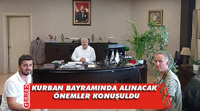 Kurban Bayramı öncesinde hazırlık çalışmaları kapsamında gerçekleştirilen faaliyetler ile ilgili bilgi aktarımı yapılan toplantılar kapsamında Darıca Belediyesi Temizlik İşleri Müdürü İbrahim Gündoğdu, Çayırova Belediyesi Başkan Yardımcısı Kenan Tuzcu İle Temizlik İşleri Müdürü Ayten Ketene, Gebze Belediye Başkan Yardımcısı Selamet Güner, Körfez Belediyesi Zabıta Müdürü Mehmet Gökkaya, Derince Belediye Başkan Yardımcısı Abbas Bayrak Ve Gölcük Başkan Yardımcısı Fikret Ormancıoğlu İle Çevre Koruma Ve Kontrol Müdürü Serkan Aksöz makamlarında ziyaret edilerek, ilçe bazlı olarak hazırlanan dosyalar takdim edildi.