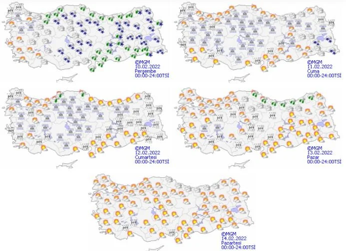 Meteoroloji tarafından güncel hava durumu tahminleri yayınlandı. Türkiye’nin birçok bölgesinde kar ve sağanak yağmura neden olan yağışlı hava dalgası bir süreliğine yurdu terk edecek. Hafta sonu hava sıcaklıklarında büyük değişiklik beklenmese de parçalı bulutlu ve güneşli bir hava görülecek.
