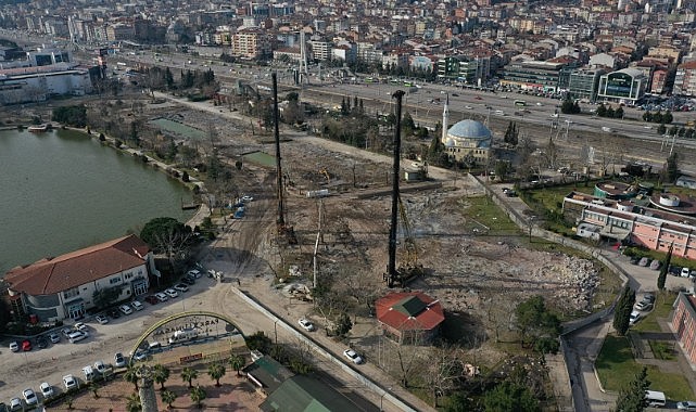 Kocaeli fuarı alanında yapımı devam eden İzmit Millet Bahçesi projesi kapsamında fore kazık imalatları devam ediyor.