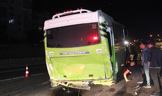 İzmit'te otomobil, yolcu almak için durağa yanaşan özel halk otobüsüne arkadan çarptı. Kağıt gibi ezilen otomobilde sürücü kaldırıldığı hastanede hayatını kaybederken durakta bekleyen iki kişide yaralandı.