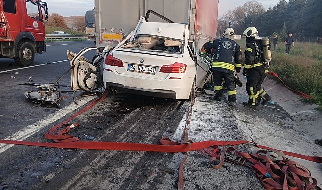 Kaza, önceki akşam saat 17.00 sıralarında Kuzey Marmara Otoyolu Balçık gişeleri mevkiinde meydana geldi. 34 NUJ 441 plakalı BMW marka otomobili ile Ankara istikametine seyreden Yunus Emre Z. (18), aynı istikamette seyir halinde olan tırın dorsesine çarptı. Dorsenin altına giren otomobil hurdaya döndü. Olay yerine sağlık, itfaiye ve jandarma ekipleri sevk edildi. Sağlık ekiplerinin yaptıkları kontrolde sürücü Yunus Emre Z.'nin hayatını kaybettiği belirlendi. Sürücü sıkıştığı yerden itfaiye ekipleri tarafından çıkartıldı. Jandarma kazayla ilgili inceleme başlattı.